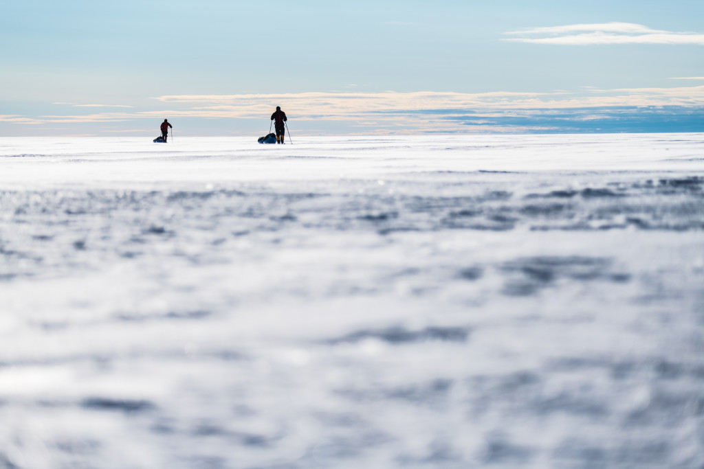 Kräftezehrend die 7-tägige Portage der 400 Kilogramm schweren Ausrüstung auf das Inlandeis, ehe Glowacz, Ulrich und Hans am 13. August 2018 zur etwa 1.000 Kilometer langen Durchquerung des Eisschildes von West nach Ost aufbrachen, während sich Skipper Wolf Kloss auf seiner „Santa Maria“ an die 1.200 Seemeilen entfernte Ostküste Grönlands aufmachte. Im Idealfall geplant: Die Wiedervereinigung beider Teams nach etwa 35 Tagen im Soresbysund. Obwohl Glowacz und Kollegen mit heftigen Stürmen und zermürbender Kälte von bis zu minus 40 Grad zu kämpfen hatten, konnte bei optimalen Bedingungen unter Inanspruchnahme von Snowkites gelegentlich richtig Strecke gemacht werden.