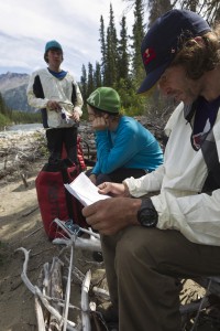 Kanada, British Columbia, Turnagain River, Unterwegs auf dem Turnagain River, Camp 6-Camp 7, Kurze Rast am neuen Lagerplatz, Wir tragen noch eine Portage hinter den Wasserfall.
